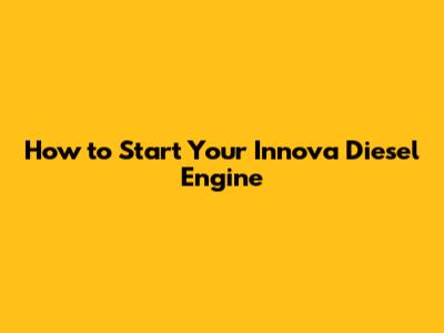 How To Start Your Innova Diesel Engine