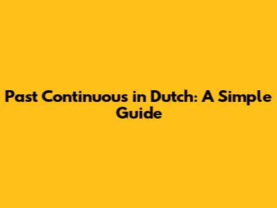 Past Continuous In Dutch: A Simple Guide