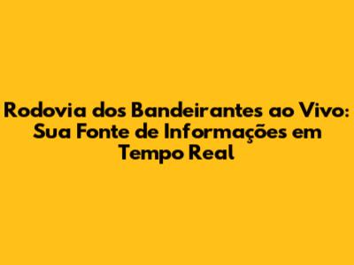 Rodovia Dos Bandeirantes: Trânsito Ao Vivo E Informações